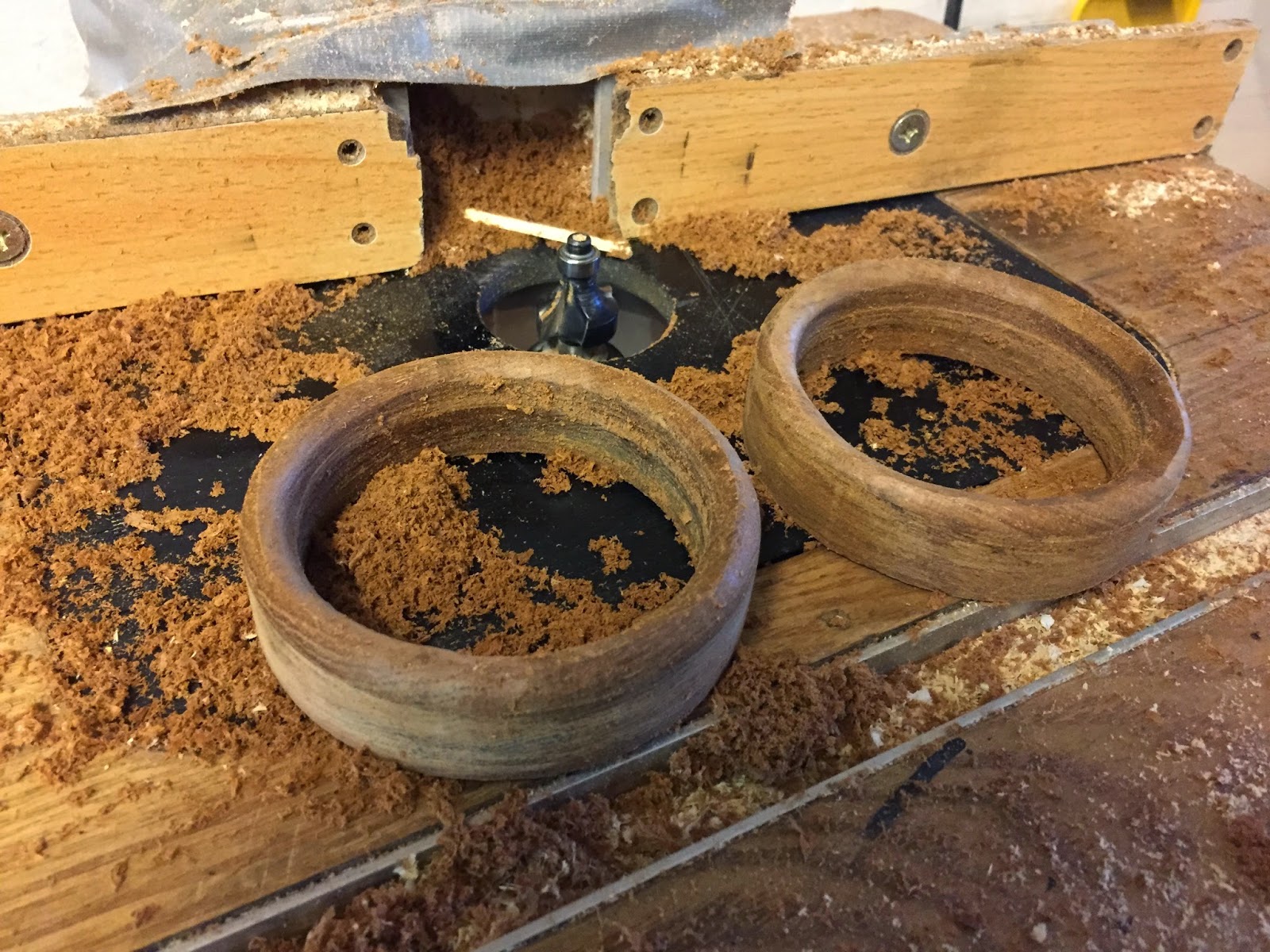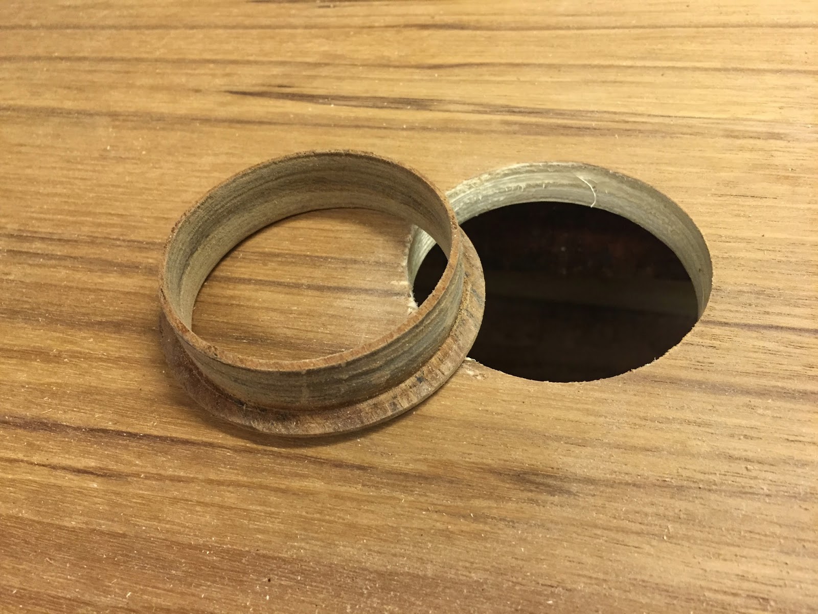 Sen får man försiktigt bryta bort den yttre ringen från undersidan och fräsa kanten jämn på undersidan. Då "godstjockleken" bara är ca två mm krävs det några haverier innan man lyckas få en ring som håller ihop...