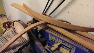 Med top-skivan för handfatet som mall, gör jag två stycken ändstycken (uppe o nere) som jag sen skruvar ihop med varandra med ett par små reglar. Jag skruvar sen fast det hela på en bock så det inte vrider till sig under arbetets gång.