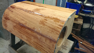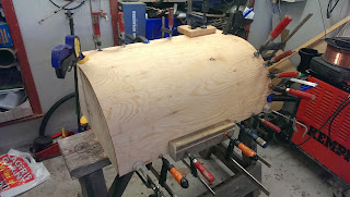 Formen kläs sen med två lager 4mm furuplywood, dessa hellimmas med epoxy.