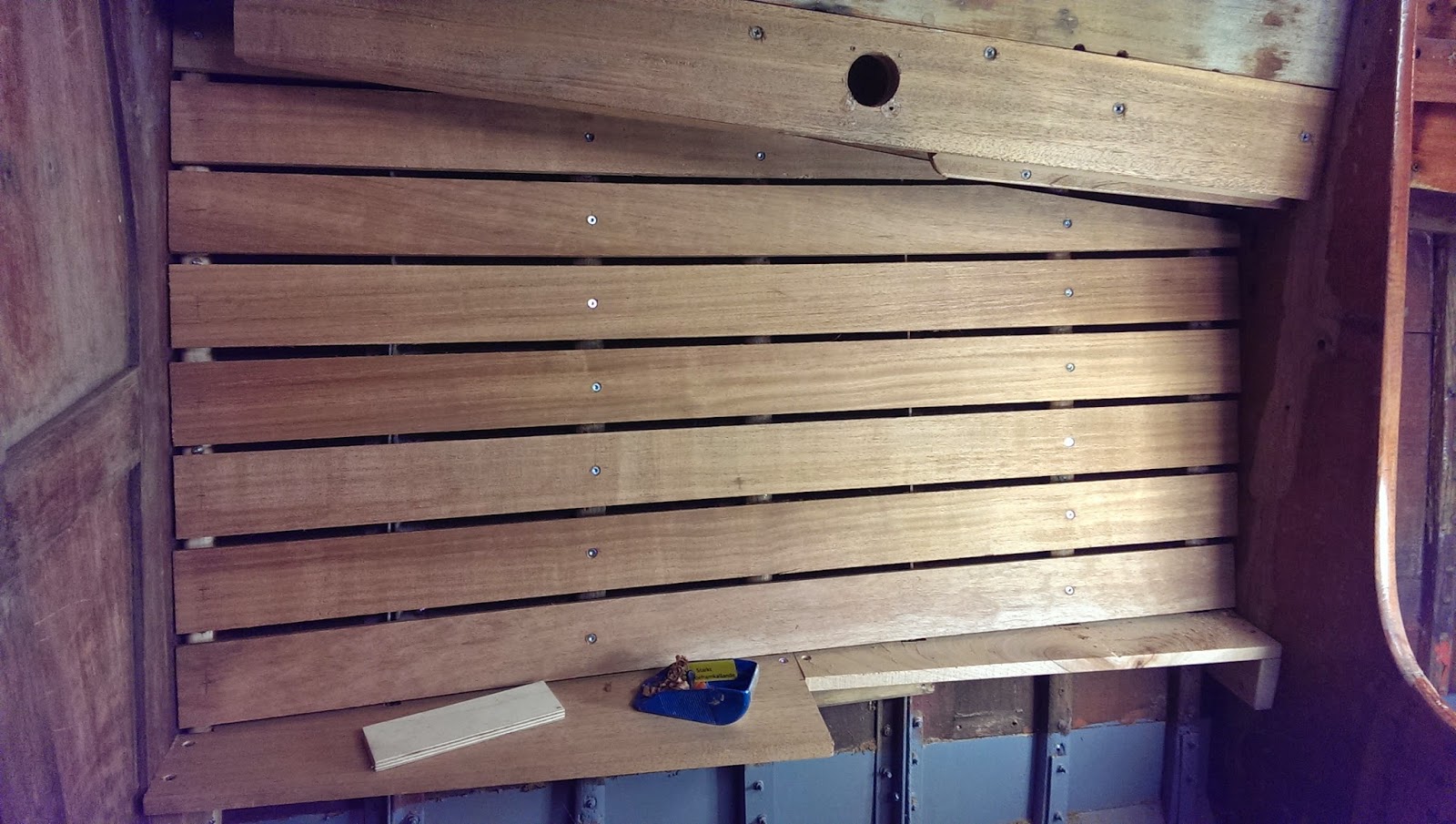 Bygger vidare på lite inredning i Corall. Nu har turen kommit till förarplatsen igen. Jag bygger nu en låda till att ha som fotsteg framför förarstolen. Den kommer ju då även ha en lucka för att kunna ha lite förvaring i, man måste ju ta vara på alla kubikdecimeter.