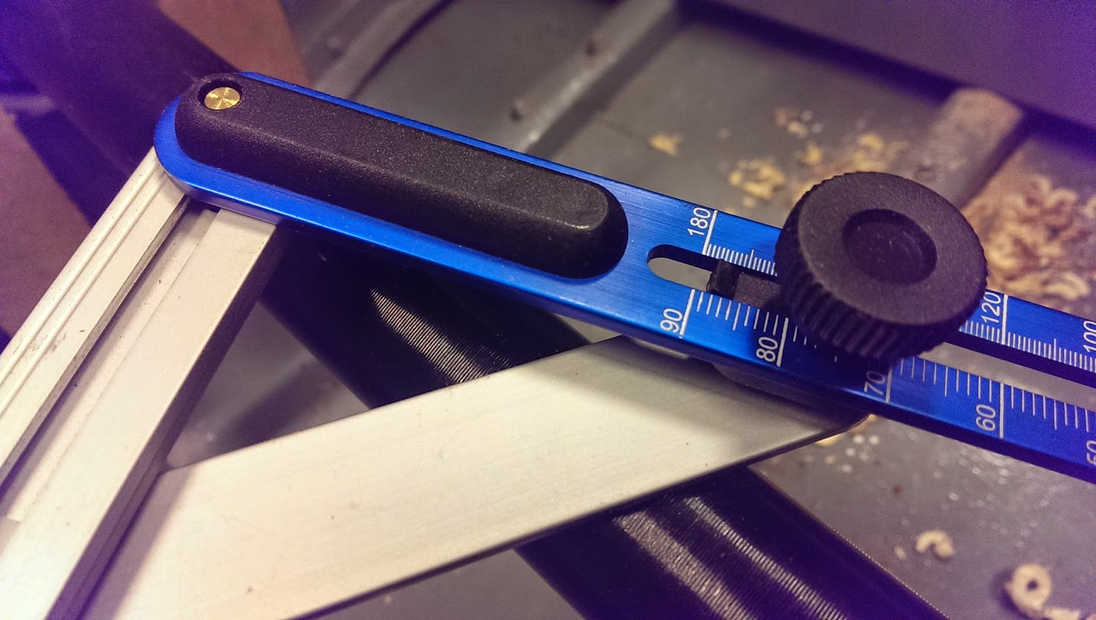 Med hjälp av en vinkelmätare och en bit MDF mäter jag vinkeln mellan knutarna och mellanaxeln, justerar tassarna på motorn tills det hamnar i ett bra läge.